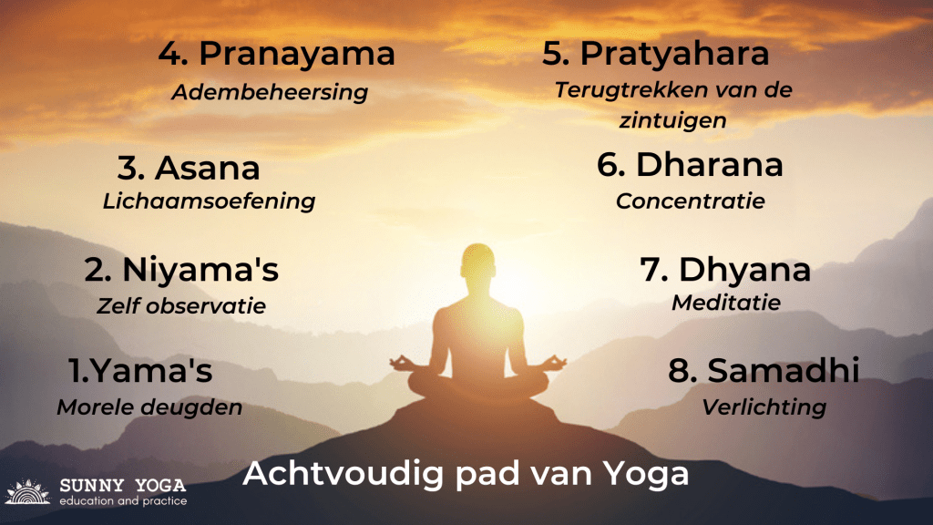 De samenbundeling van deze drie krachten noemen we Raja Yoga. Raja Yoga is de Koninklijke yoga waarbij men door een samenspel van oefeningen leert om de geest te beheersen. Raja Yoga staat niet beschreven in de Gita, maar is opgeschreven door de belangrijkste grondlegger van de yogafilosofie: Patanjali. Hij is de schrijver van de Yoga Sutra’s, die stammen uit ongeveer 200 voor christus. Patanjali is de vastlegger van het achtvoudig pad.